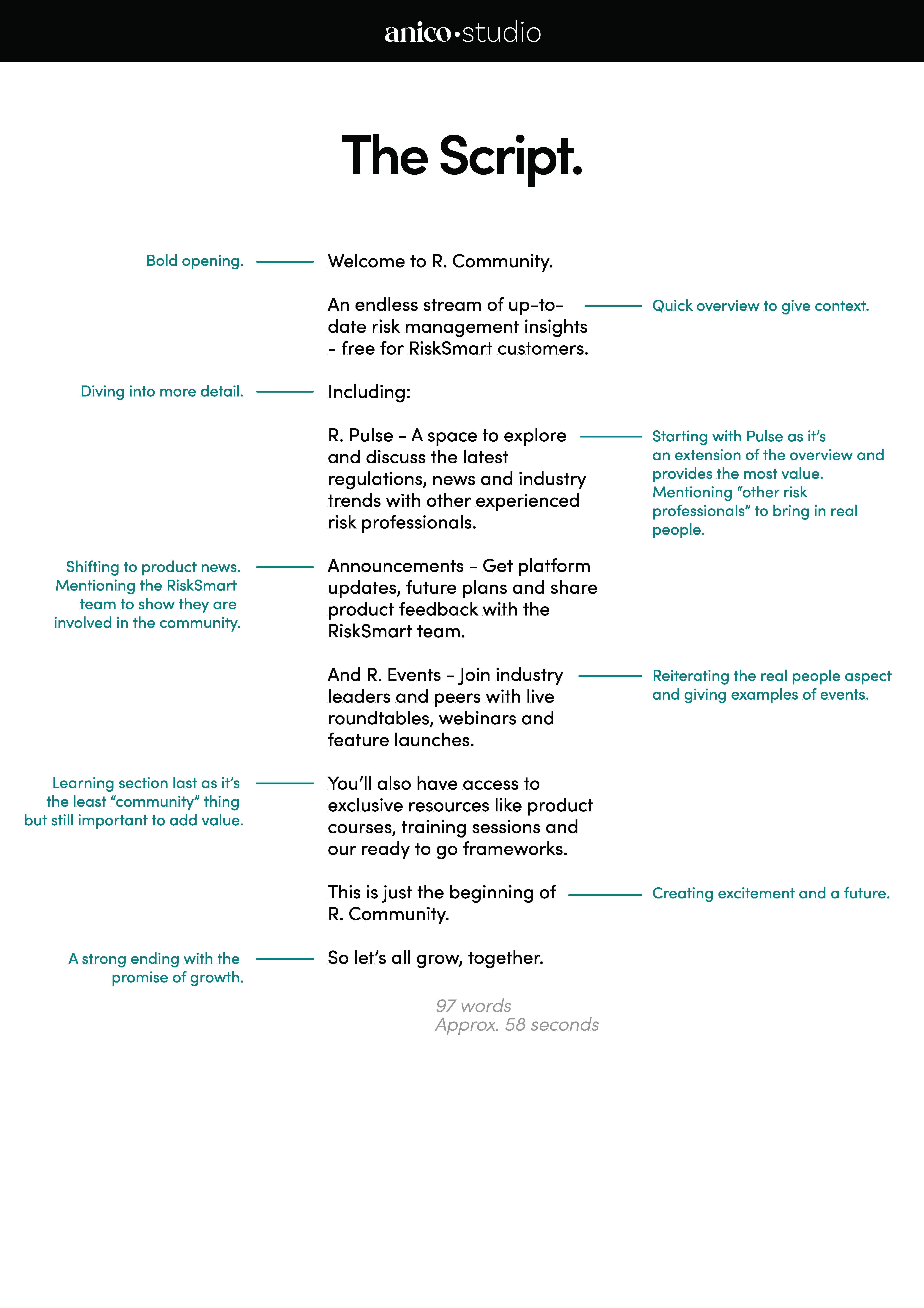 Crafting a script that grabs attention, creates excitement and educates viewers.